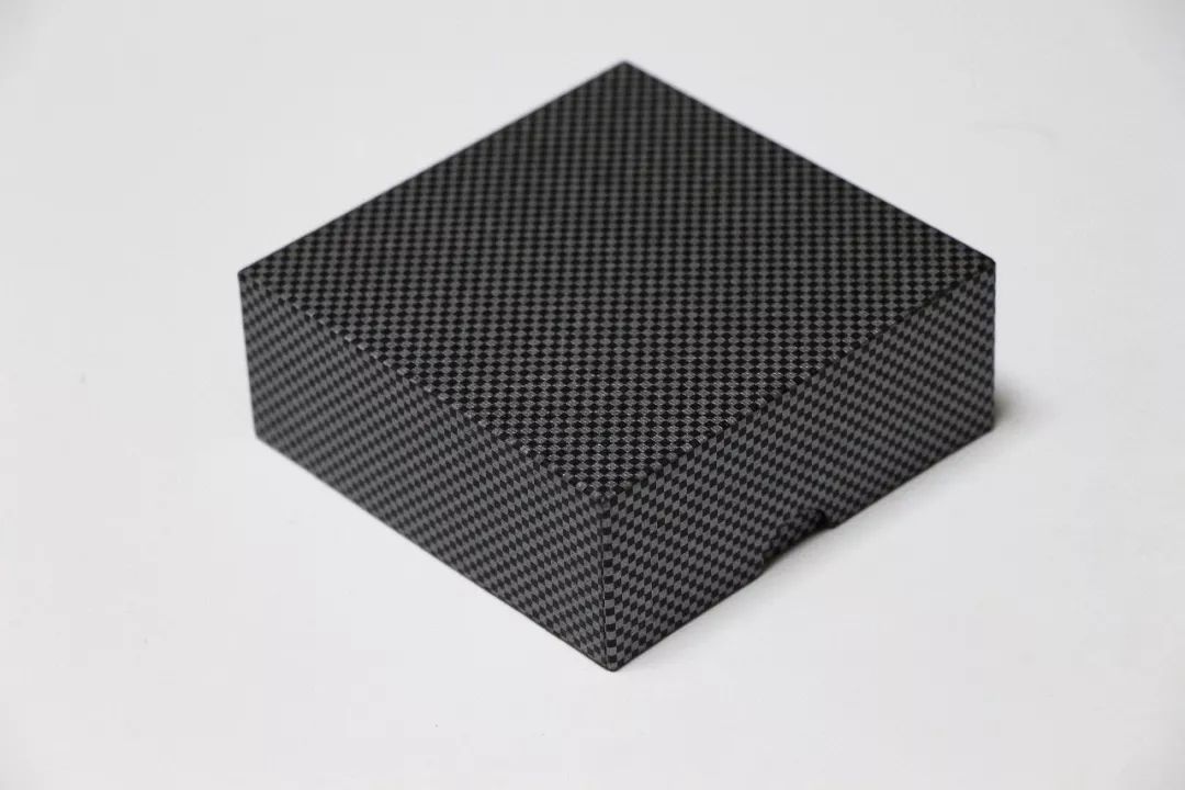 充电盒的包装简约至极,没有了品牌LOGO和多余的设计,黑银色的棱形交错组成的外盒却不失品味。