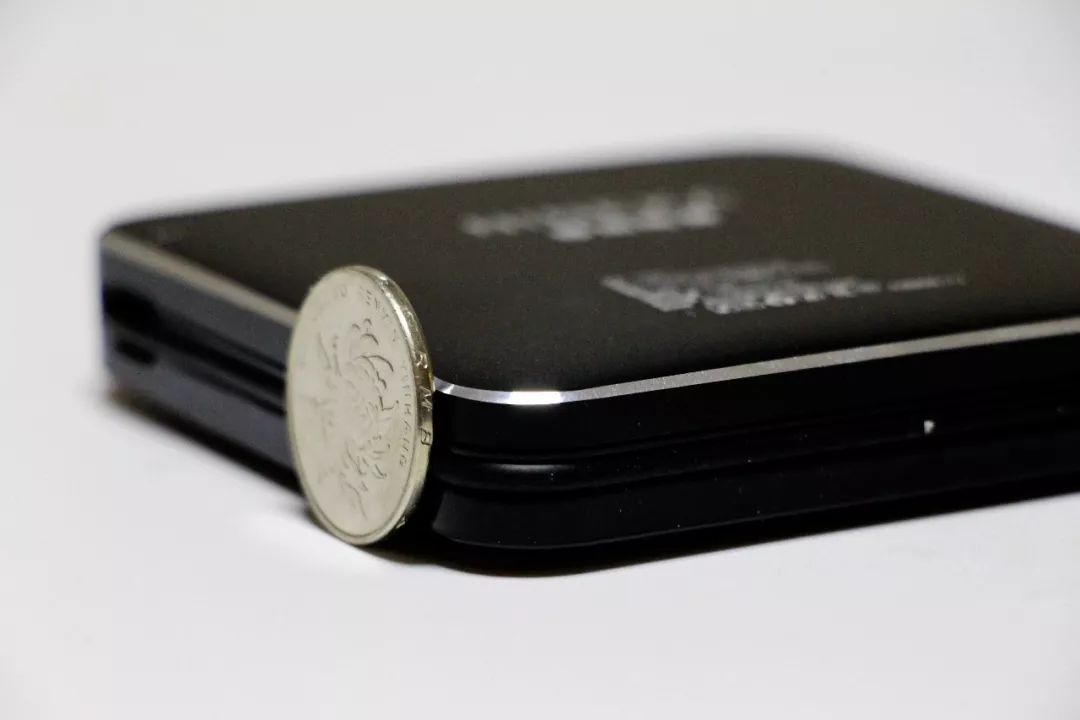 南卡充电宝的厚度仅为1元硬币的一半左右,据我个人使用充电宝的经验,10000毫安的充电宝厚度都要比硬币厚很多。