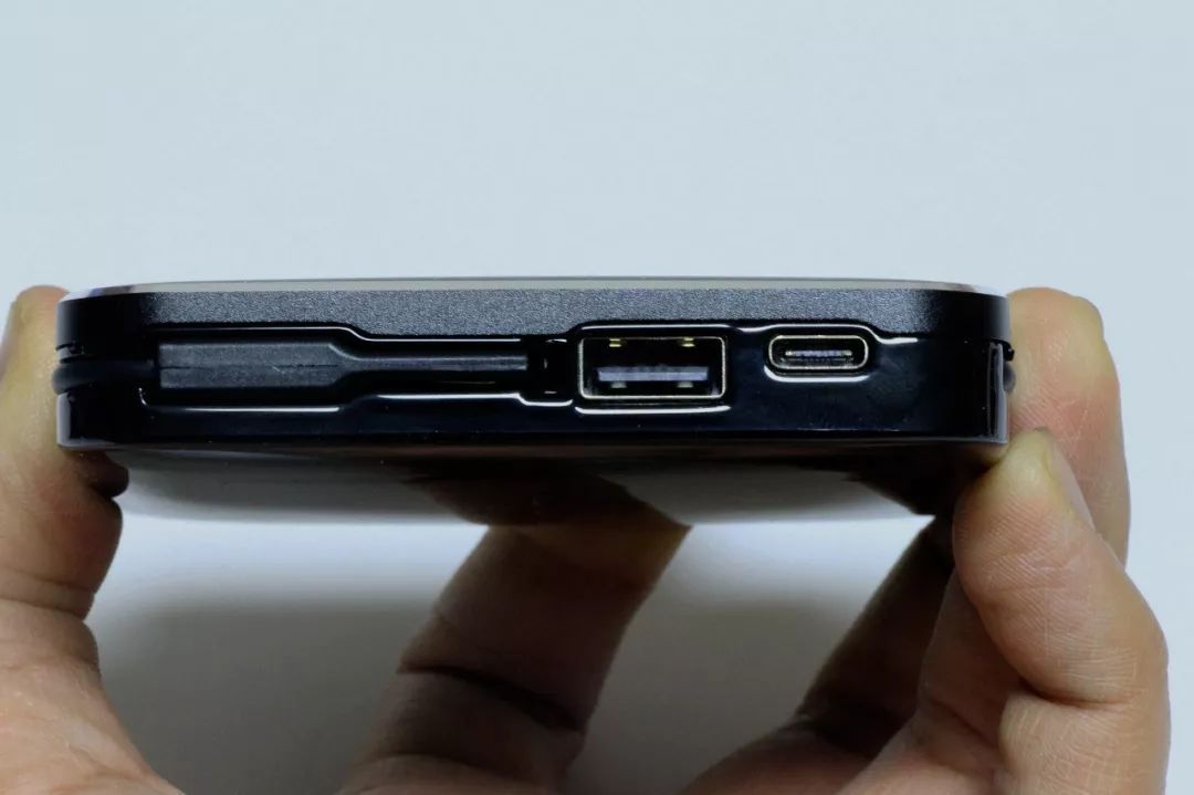 南卡这款充电宝还有一个存放接口的空间,这个孔内可以放置一个苹果充电转接口,这样有利于携带出门,随时可以拿出来使用,非常人性化的设计。如果Type-C的接口也设计一个同样的位置就更好了。