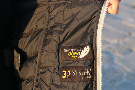 这款冲锋衣是三合一的,他的内胆是羽绒服,还是白鹅绒的,感觉冷天穿着还是非常保暖的,而且完全可以作为一件单独的御寒服装。