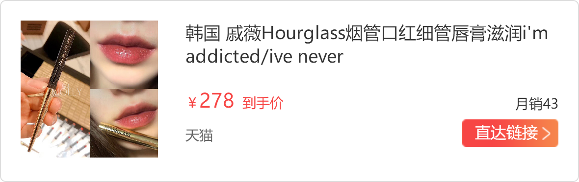 最近新到手的这支口红真的超级心水了,hourglass的i'm,addicted这个颜色真的是太适合秋冬季节了,偏棕的奶茶色,有点偏深的干燥玫瑰的意思,还带一点点砖红色的调调,第一张图片左下角是在自然光下,下图的照片是在白色光下面的效果,这个颜色真的太提气质了,有一点点高冷的感觉出来,现在涂还是非常温柔大气的呀。