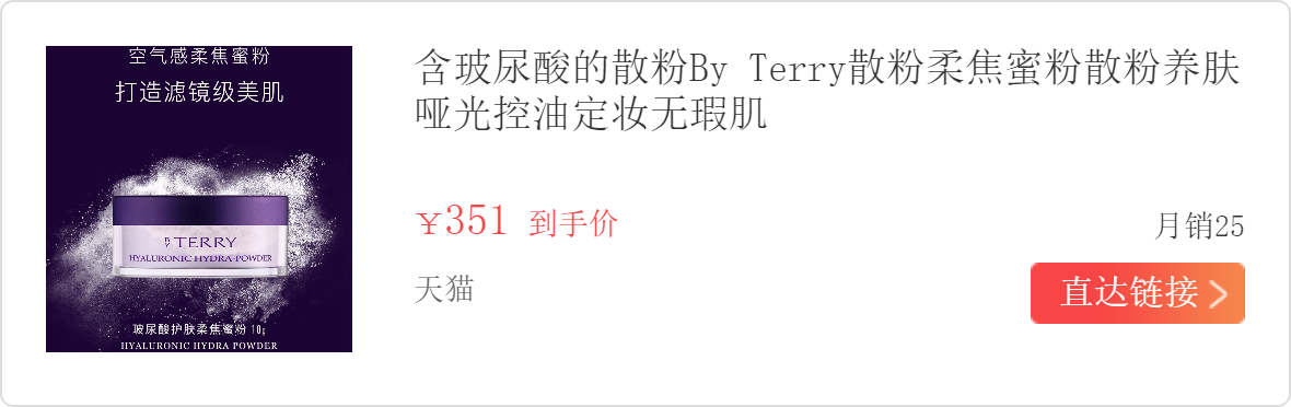 家里的那个3CE定妆蜜粉用了很久了,看了下美妆博主的推荐就忍不住换了BY TERRY的玻尿酸护肤柔焦蜜粉,我看中它的两用功能,既可以当定妆粉,又可以当晚安粉!我之前是挺想要资生堂的晚安粉,但是风太大,自然难买,所以我就先买了这个试试~
