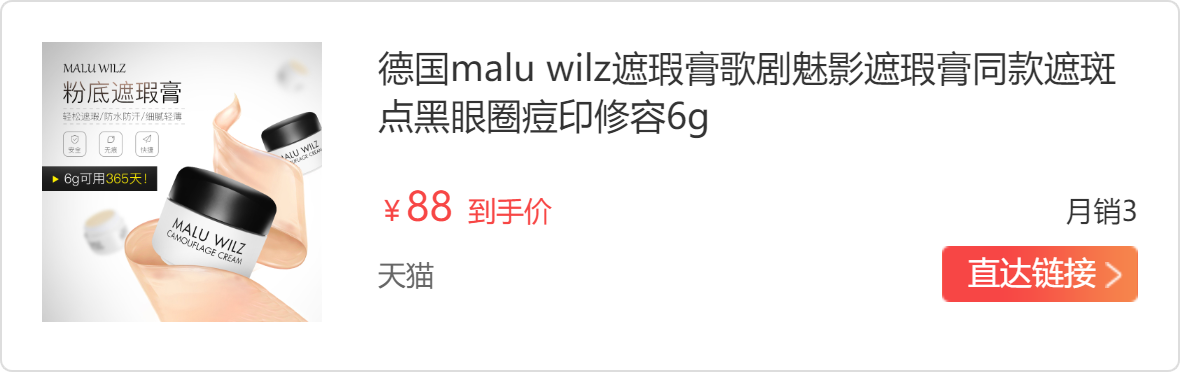 最近淘到一款遮瑕膏叫Malu Wilz,之前Pony大神老师就有推荐过然后种草的,是德国的,超级可爱又好用!遮暇力max!