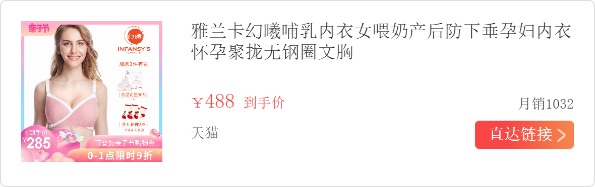 处于哺乳期的妈妈们,因为咪咪肿胀,还要频繁喂奶,所以哺乳期的内衣一定要选一件舒适、没有束缚感,还要喂奶方便的内衣。同时还面临着乳房下垂的问题,和闺蜜亲测,幻曦哺乳文胸是最佳选择。