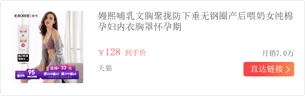 作为一个宝妈,最近做了不少哺乳内衣的功课,后来发现嫚熙和婧麒家的哺乳内衣好评最多,所以趁着双十二打折就一样入了一件,看看哪件更适合我,因为我是小胸妈妈,最看中的还是内衣穿上去聚不聚拢,面料舒不舒服之类的。