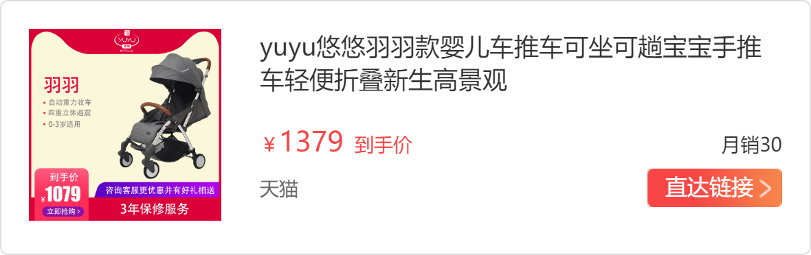 纠结了好久终于选定了这款,选择综合症的我,真的是看了好久,挑花眼了!问了各种群里的孩子妈,网上也一直看,看评价总觉得不踏实,退货还麻烦,后来还是去实体试了试车,选了这款yuyu羽羽婴儿车。