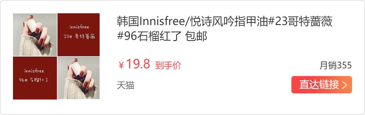 这是两层底油之后涂一层的效果(因为指甲比较薄,刚卸掉光疗甲,为了隔离色素涂了两层底油,底油也是悦诗风吟的)