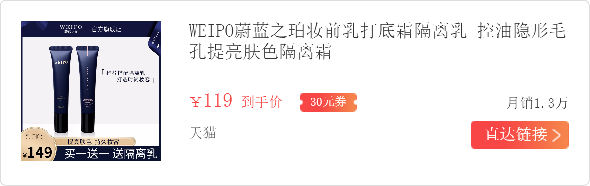 Weipo的这款妆前乳适合所有肤质,轻松驾驭干皮油皮,包括混合型肌肤哦。