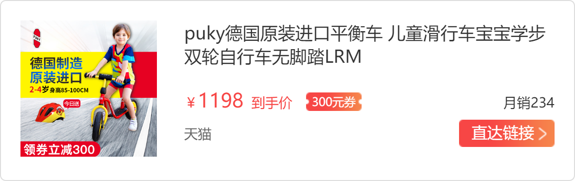 桃子目前身高90cm,PUKY平衡车,坐上去很合适,还不太会骑,需要大人帮忙扶着,相信她多骑几天很快就会不需要我们帮忙了!
