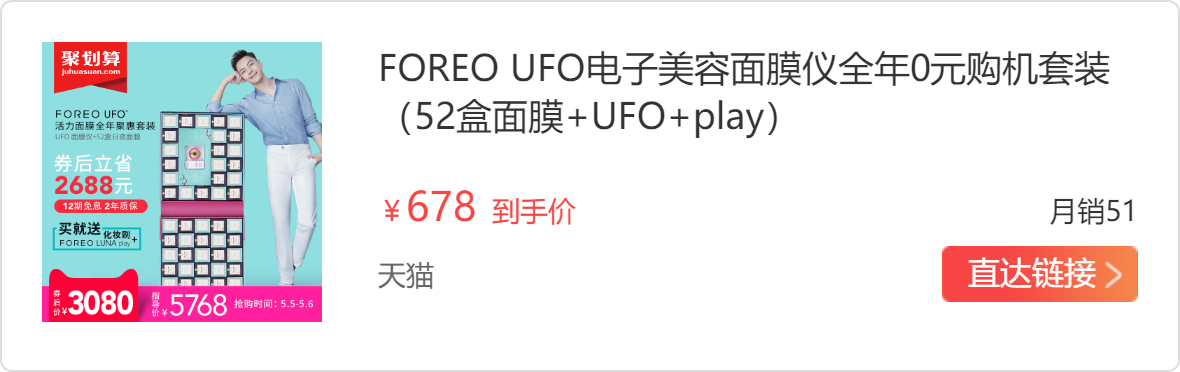 我是格外喜欢尝试各种黑科技护肤的,之前就买过FOREO的洁面仪,清洁功能没话说,后来刷到陈伟霆代言了UFO面膜仪,为了补水保湿几乎没怎么考虑就入手了,好叭,除了被美色击倒之外,我也是很相信他们家的水平的!