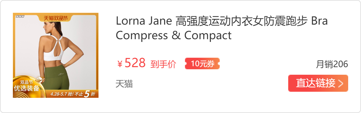 运动Bra我只穿Lorna Jane的家的,有颜值,实用性强。自从穿了Lorna Jean家的运动内衣,平时穿不健身的时候都不想穿别的bra了,这大概是我给Lorna Jane bra最高的评价吧。