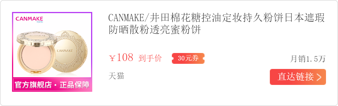 我的第一个砍妹的粉饼是在日本买的,买了ML最白的颜色,现在还是买MO,觉得MO更适合自己。我已经空盘了两个了,现在是第三个。这个粉饼相对适合夏天一点,很控油,但是相对的妆感也会有一点重。用这个粉饼最好用刷子,用自带的粉扑很容易卡。如果用刷子的话想对比较均匀。冬天就最好不要用啦,会有一些干!