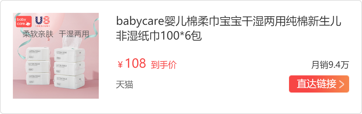 babycare棉柔巾是有一次我买他家东西的赠品了,拿到手的时候还小小的惊艳了一把,颜值很高,外包装是ins风的,打开抽了一张,这下真的让我有点惊喜了,纸张很厚实,真的像一块小抹布一样,很柔软,沾了水之后也没有什么缩水的迹象,揉搓拉扯着也没有抽丝和起球掉絮什么的,用了之后还能拿来擦桌子(节约是美德哦)拿它给宝贝擦屁屁,一次1-2张就够了,也不会弄脏手,好开心。