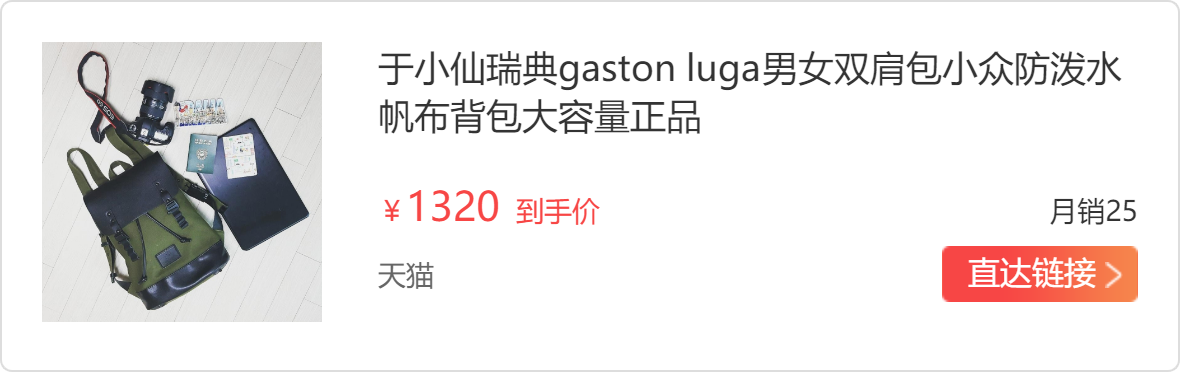 我是一个喜欢旅游的人,为了方便,特意买了双肩包,买回来发现,这款背包不仅可以外出旅游使用,外出背着的时候也是非常好的,颜值高啊,这款包就是gastonluga背包。包包是我在官网买的黑色+军绿色拼接款,我自己特别喜欢,时尚又低调。