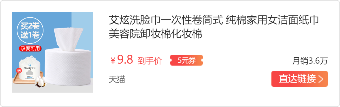 第一款艾炫,是我用了很长时间的,因为真的很亲肤,擦在脸上真的很舒服,是在网上买的,我每次买都是做活动的时候买的,14块多左右,差不多一卷可以用两个多月左右,有分大小,两个我都用过,都是一样的质地,也很大是网状型的,属于不薄不厚,用着刚刚好,卸妆洗脸都OK。