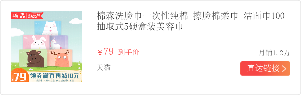 棉森已经用了有差不多十包了吧,毕竟真的是便宜又好用,自从发现它,洗脸就再也没用过毛巾,很柔软,上脸很舒服,虽然是一张小小的,但是擦干脸已经足够了,用一张丢一张,干净卫生。