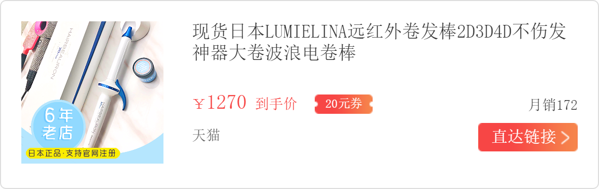 不过,说实话,长期用一两个星期下来,还是对发质有损伤,现在基本只有在需要凹造型的时候,或者前天晚上睡成鸡窝的时候才用。这个卷发棒卷的头发确实手感很好,很有光泽,很有弹性。用了十几年卷发棒啦,这款是真心推荐哦~