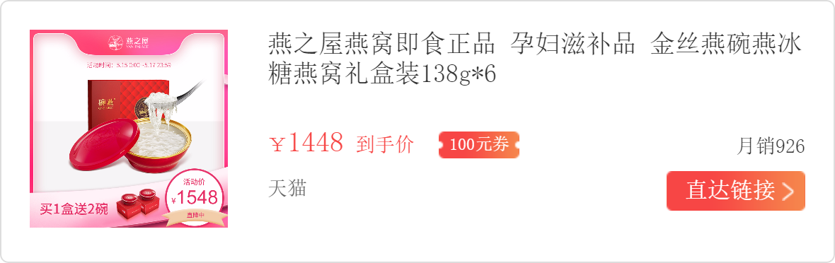 为了把身体养好,我在备孕期间就开始服用燕窝,选择的是燕之屋的碗燕,一盒净燕窝含量很高,有3g,吃起来口感清甜,燕丝清澈可见,吃得出是那种优质的燕窝。