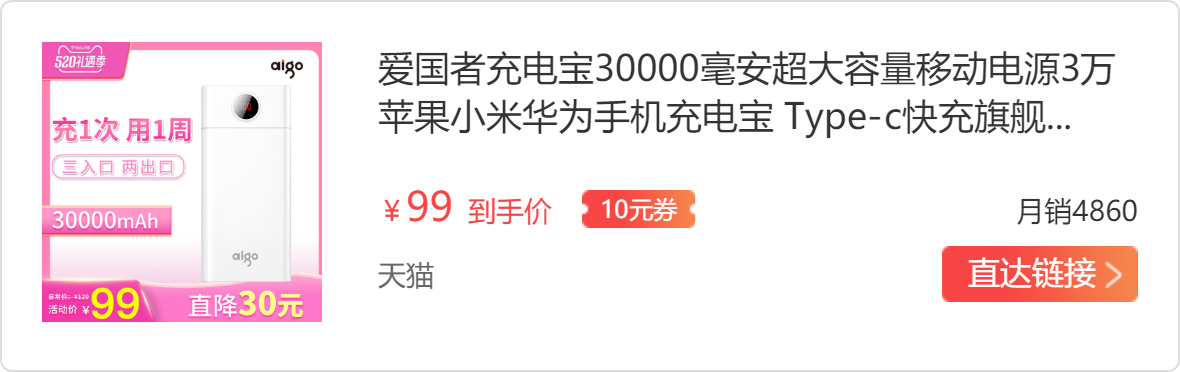 一直想要个超大容量的,结果就找到爱国者这款,绝对的大品牌了,质量很信得过,其实对于充电宝很多外行只看到了容量,没有注意转换率,就会发现有些大容量真的很不耐用,所以才更要选择大品牌。