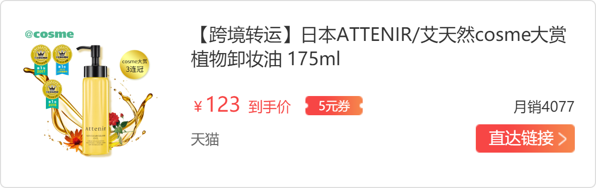 总的来说,attenir卸妆油是一款好用的卸妆油,卸妆快速清爽,但味道个人不喜欢,喜欢甜味的小伙伴可以尝试。