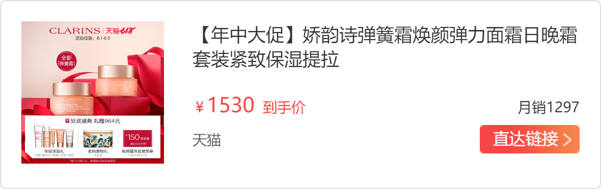 我喜欢面霜胜于乳液,选择面霜上一直倾向于保湿不油腻 抗衰紧致系列,还有一个最重要的因素是,一定要香香的,娇韵诗家的面霜比较符合我选择的标准,都是淡淡迷人的花香,不会刺鼻,也不会有那种香精的味道,所以东西好性价比很高。50ml 容量 日霜+晚霜可以用很久,特别扛用,面霜白色膏体,质感很稠,上脸感觉特别好,吸收快,不油腻,有紧绷的感觉,这款主打紧致,抗衰,适合30+的女性,会一直回购。