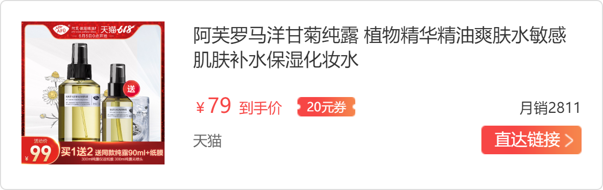 有一段时间纯露这股风不是hin火嘛,我看我关注的各大博主都在用纯露,我也没有忍住,入手了罗马洋柑橘纯露。因为我的肌肤是属于hin容易泛红的那种类型,再加上有的时候作息不太正常还容易长闭口啥的啊。所以我就入手了阿芙洋甘菊纯露。