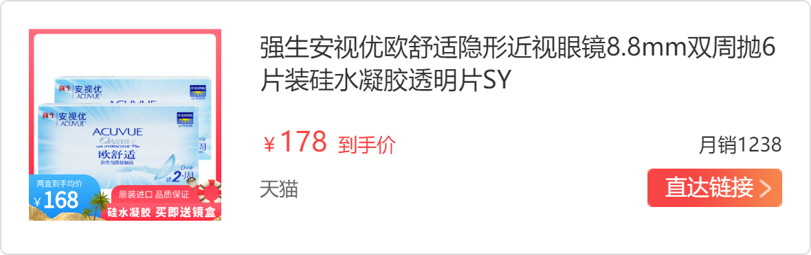 这个欧舒适日抛是强生安视优品牌下最高端的日抛品牌,采用了泪液仿生科技,可以说是隐形眼镜中的爱马仕,戴在眼睛里的东西肯定要保证足够安全和健康才可以呀~强生是一个很厉害的品牌,这么多年来一直都很出名,绝对安全可靠。