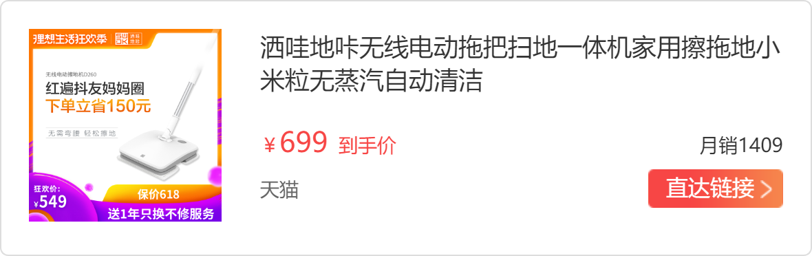 这款是我家里正在用的,品牌属于小米生态系。玫瑰金的颜色,颜值很高。无线,配有两块电池。使用方法很简单,将拖地布平整粘贴在底部,往机器自带的水箱里加水,就可以拖地了。水箱很大,加一次水拖100平地完没问题。拖把上就两个摁键:开关键和喷水键,喷出来的水是雾状的,湿度刚刚好;拖把的工作方式是前后振动,相比以前的旋转振动,机身更薄,指向性更好,也明显擦的更干净。振动频率非常高,有1000次/分钟,拖地真的超干净。电池续航能力非常不错,拖三房两厅戳戳有余。重量也很轻巧,拖地不用弯腰,很轻松。拖完之后只要清洗拖地布就可以了。需要护理地板的时候还可以往水箱中加入打蜡油或清洁液。特别适合70-110平的家庭日常使用!