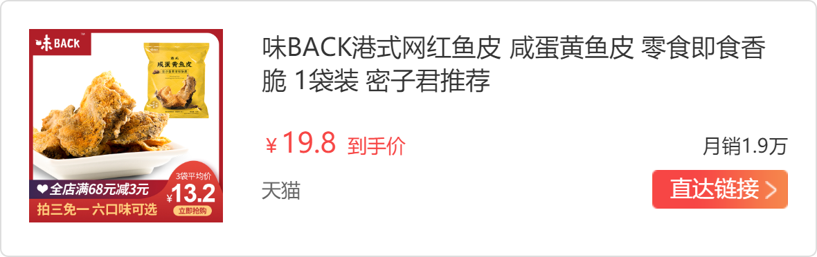 最近爱上了味sir家的咸蛋黄鱼皮,酥酥脆脆完全是膨化食品的口感,但是一想到咸蛋黄和鱼皮都是高蛋白的,嗯,我不会长胖的!