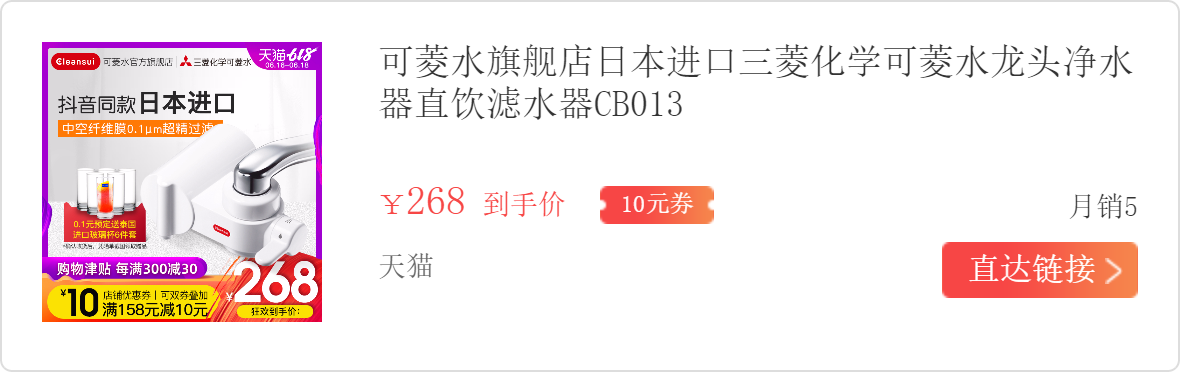 当时看了下 可菱水的网上介绍说过滤芯含有优质的活性炭颗粒,可以有效去除老化管道的铁锈和三氯甲烷等有机物,而且活性炭的吸附能力比较强,在净水过滤上比较出色。