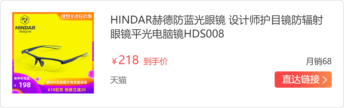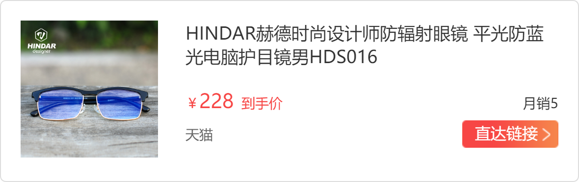 因为长时间盯着电脑,感觉眼镜非常不舒服,所以就想着买个防蓝光眼镜保护一下眼睛,看了很多牌子,最后在网上看见了关于HINDAR防蓝光眼镜的评测,就去问客服,是否会出现头晕的现象,是否带度数的。客服说镜片带屈光微度的,说是为了缓解近距离视物时引起的视觉疲劳的,首次佩戴的人群需要适应。