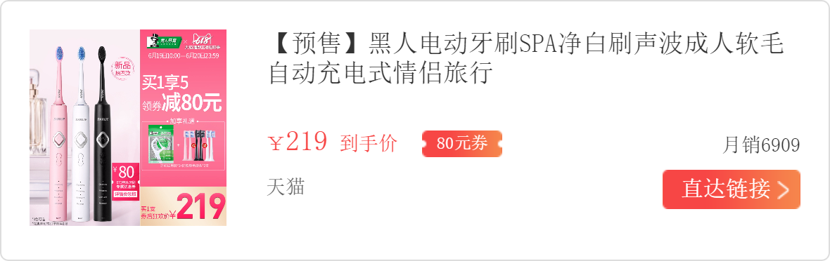 牙膏我们家里一直都是在用黑人,所以看到他们新出了一款黑人ET3声波电动牙刷,才299,我立马就入手试试了。