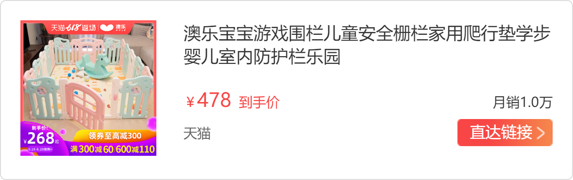 宝宝出生之后,我就格外觉得房子变得好小啊,哪哪都是宝宝的玩具,为了家里更加简洁,于是我就决定迅速入一套围栏。作为一个颜控妈妈,选择东西实用的同时,颜值也是非常重要的,做足了功课最后选择了澳乐这款儿童围栏,之所以pick它,是性价比高,到手后真的灰常惊艳了。