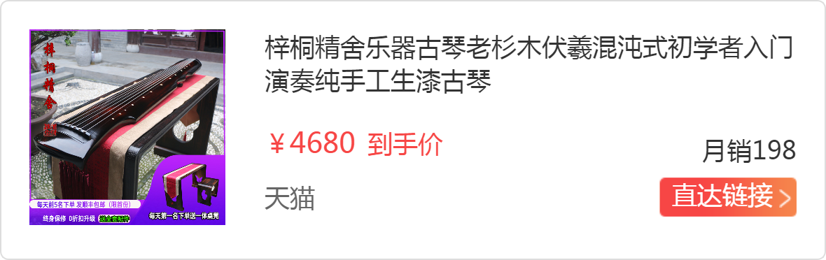 这类琴的有两种,一是价格在两万到五万左右的,一是价格在十万左右的。一般准备一步到位的新手或者是准备换琴但是预算并不高的朋友,选择两万到五万左右的古琴最为适合,譬如丁永贵的红混沌老杉木古琴和倪诗韵的雷音系列古琴,都是目前市场上公认的性价比非常高的古琴。尤其是丁永贵的红混沌古琴,比它好的没有它便宜,比它便宜的没有它好,说是性价比最高的古琴也不为过。