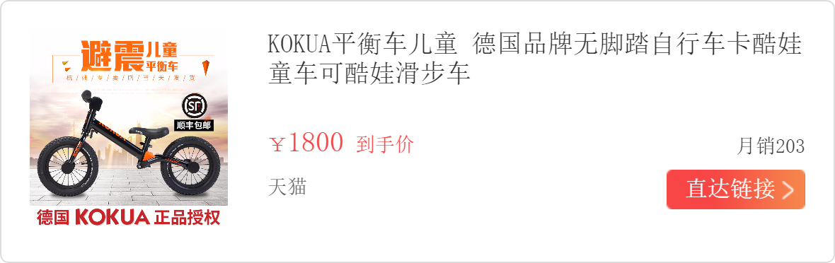 到了今年春天,他2岁5个月吧,我们又开始把车拿出来了,我暗下决心,还不信教不会你了,只要到小区院子玩,我就把车带上,头两次他就推着走50米吧,第三次下楼,正好有几个大点的孩子在骑自行车,我就说你去追哥哥,看谁跑得快,就这样在院子里转了两圈,学会啦,还要归功于他特别喜欢的一个小姐姐正好看到他在骑车,不忘夸他两句,简直上天了,哈哈!我想说的是,现在不会骑的,父母不要太过着急,慢慢来!