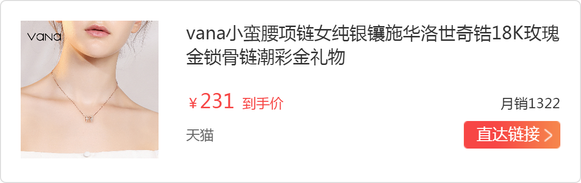 vana不是很大的品牌,但却被大众所熟知,价格亲民,一般都能买的,在同行首饰中又独树一帜,拥有自己的特点,从最初的知道这个牌子,到后来慢慢了解,再到熟知再为别人推荐首饰时的首选时,买其系列产品已经有四年之久,可以说算是一个老客户,对其品牌这几年的发展能看到变化,算是慢慢在首饰品牌界崛起的新星,开始知道品牌界开始推出扩展更多的店铺,一个品牌的发展越来越壮大时,我就知道我的选择没有错,vana值得信赖!