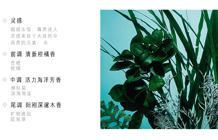 BVLGARI宝格丽碧蓝男士淡香水,清新的柑橘搭配水生植物,表现出男人的清爽自在。以水为创意设计元素的香水蕴藏着天然的海洋气息,替男性使用者带来了晨曦时刻般的焕然一新。呈现出古典风格,以及都会的优雅性格。具有力量却低调自持,散发强烈吸引力与神秘感,气质洗练又充满热忱,一种属于都会型男的夜间气息。