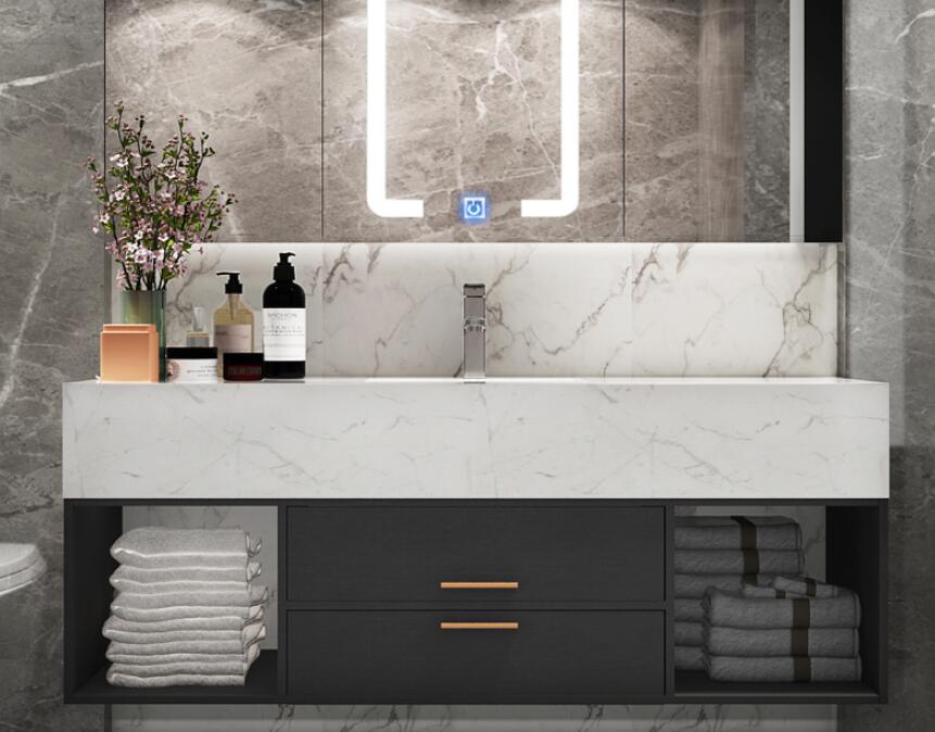 3 九牧浴室柜现代轻奢洗手盆柜组合洗脸简约挂墙式卫生间北欧洗漱台