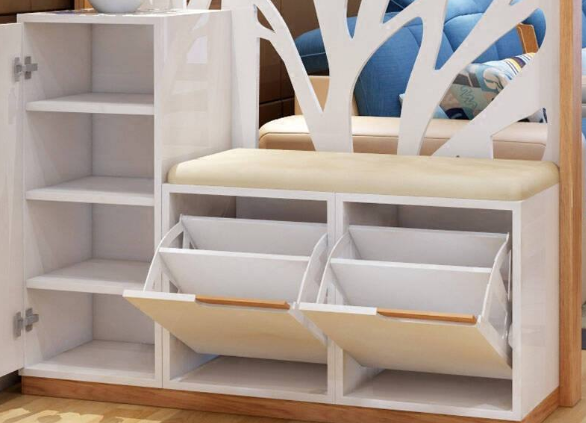 门厅柜配合着家居装修,可以被设计成不同的颜色,但还是要注意保持家居整体的色调,这样才能使得装修更为完整,更具观赏性,但是玄关鞋柜样式的颜色搭配,在风水学中却是深有讲究,过于深和暗的颜色,往往会给人视觉上产生冲击,使人觉得沉闷,所以作为“独阳”的红和“孤阴”的黑色,都是风水学中,对于玄关柜的禁忌颜色,使用这类的颜色,会使得家人不断地争吵,家庭关系不和谐,所以尽量选择淡色系的玄关柜,这样会使家人之间的关系更为和睦。