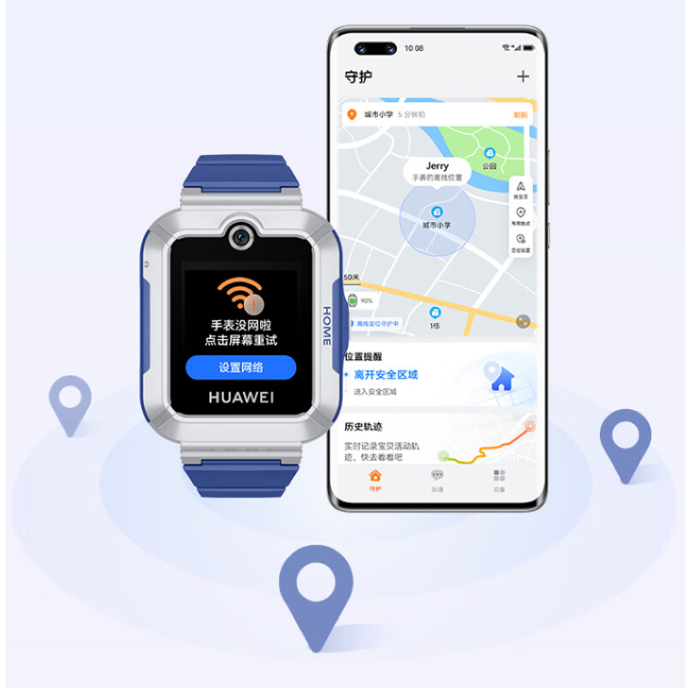 华为儿童手表5Pro外观设计深得孩子喜爱,晶透外壳搭配微弧边框,时尚、舒适又坚韧。双“芯”设计,定位精准,即使低电量关机依然可以依托独立“守护芯”和华为设备组成的查找网络实现离线定位,应用市场有多款学习、游戏及故事软件可安装,家长更可以通过手机APP管控孩子使用时间及软件,防止孩子沉迷于玩耍。支持语音通话,随时与宝贝保持联系,让爱无处不在。