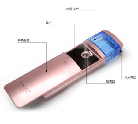 belulu纳米喷雾补水仪,精致小巧利于携带。是你的移动美容院,随时随地帮你补充水分,做一个白皙透嫩的“水”美人!