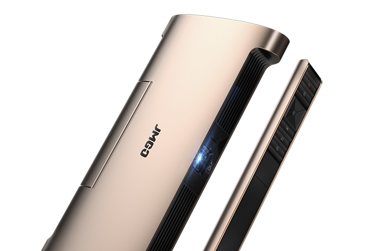 说到投影仪,可能很多人的第一印象就是学生时代教室里老旧的放映机和巨大的白色幕布,这种投影仪高高挂在天花板上,画面质量一般都不高,白天外界的光线还会十分影响观感。2014年9月,火乐科技发布了一款新型智能投影仪:拥有300寸巨屏的家庭影院,机身重1.5 kg,搭配一套高品质的金属质感外壳,圆形的外观设计,采用先进的DLP投影技术,内置蓝牙音响,这就是坚果G1。
