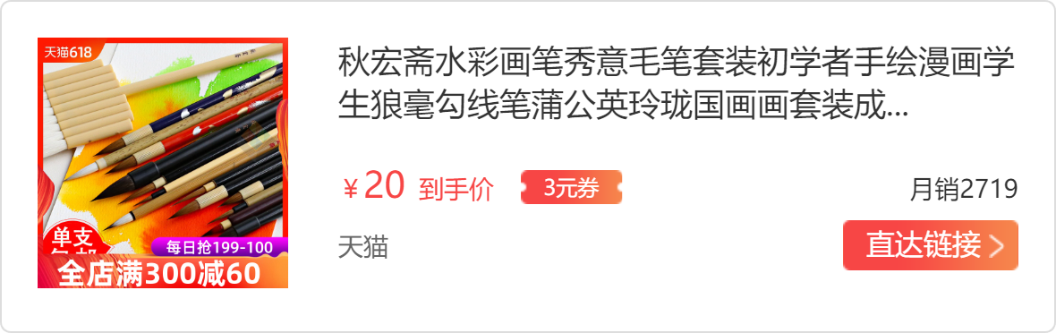 秋宏斋的笔真的是在水彩界毛笔扛霸子,他们家的笔颜值很高,名字都很好听,据说秀意(秋宏斋的另一支笔的名字)被安利的很多,我用着感觉一般这个“松枝”是我超爱的,笔毛稍微有一丢丢的软~勾非常细的线也没有问题~适合画小面积的物体,我一般用这支笔从头画到尾,这幅画就是用松枝画的。