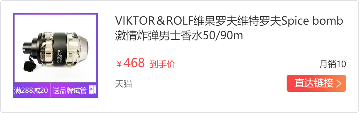 维果罗夫激情炸弹香水,瓶身非常特别了,整体造型就是一个炸弹,炸翻天,用完有一种我最酷的感觉,颜狗为了瓶子也要买一只,哈哈哈,留香挺久的。