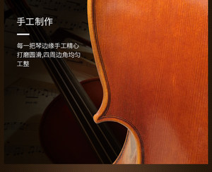NO.6优音中国 综合评分:85.5欧料专业演奏大提琴。优音,隶属于泰兴市海之韵乐器有限公司,于2011年成立,公司拥有专业的设计与制造能力,能够根据客户的需求定制和设计,提供量身定制的完美方案。优音大提琴面板采用进口欧料,经过自然存放风干以确保木材稳定,手工制作,确保每把大提琴的品质和音色。背板采用进口枫木,弹性佳,韧性好,纹路美观清晰。欧式经典流线式,边缘线条做工圆滑。采用人工打磨,发音效果好。高档防滑撑脚,平滑有光泽,伸缩自如,经久耐用。嵌线采用手工镶嵌工艺,平滑细致无瑕疵,有效防止面板开裂。