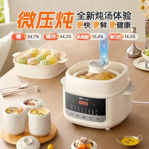 NO.3小熊 /Bear中国 综合评分:93获得“2016年度网购消费者喜爱的广货品牌”称号,中国”创意小家电“领导品牌。广东小熊电器有限公司,小家电行业著名品牌,广东省民营科技企业,最具创新力网商之一,国内创意小家电领域的知名企业之一,集研发、生产、销售为一体的精致创新小家电专业供应商。小熊砂锅甄选大埔原矿,天然紫砂内胆,不施釉,不上色,保持内胆密封性和透气性。纯手工打造,手工痕迹清晰可见,八大预设菜单,轻松一旋,坐等美味。有防干烧保护功能,炖汤更放心。