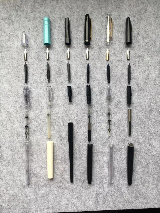 这几款钢笔的所有组成部分都可以任意拆卸,如上图,笔尖和笔舌形状完全相同,可以随意搭配使用。