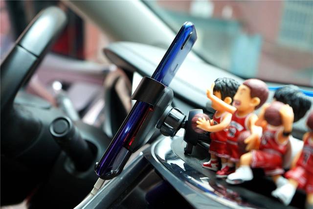 通过万向轮进行连接,放在车上你可以通过调节旋钮改变手机方向,当然还是要调整到适合自己的角度。