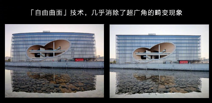 超广角能拍摄广阔视野的照片,但容易产生畸变现象,例如建筑物的线条会变得弯曲。相比非球面镜片高达 10%-20% 的畸变率,一加手机称,通过「自由曲面」技术,将其降低至近乎忽略不计的 1% 左右,几乎消除超广角的畸变现象。
